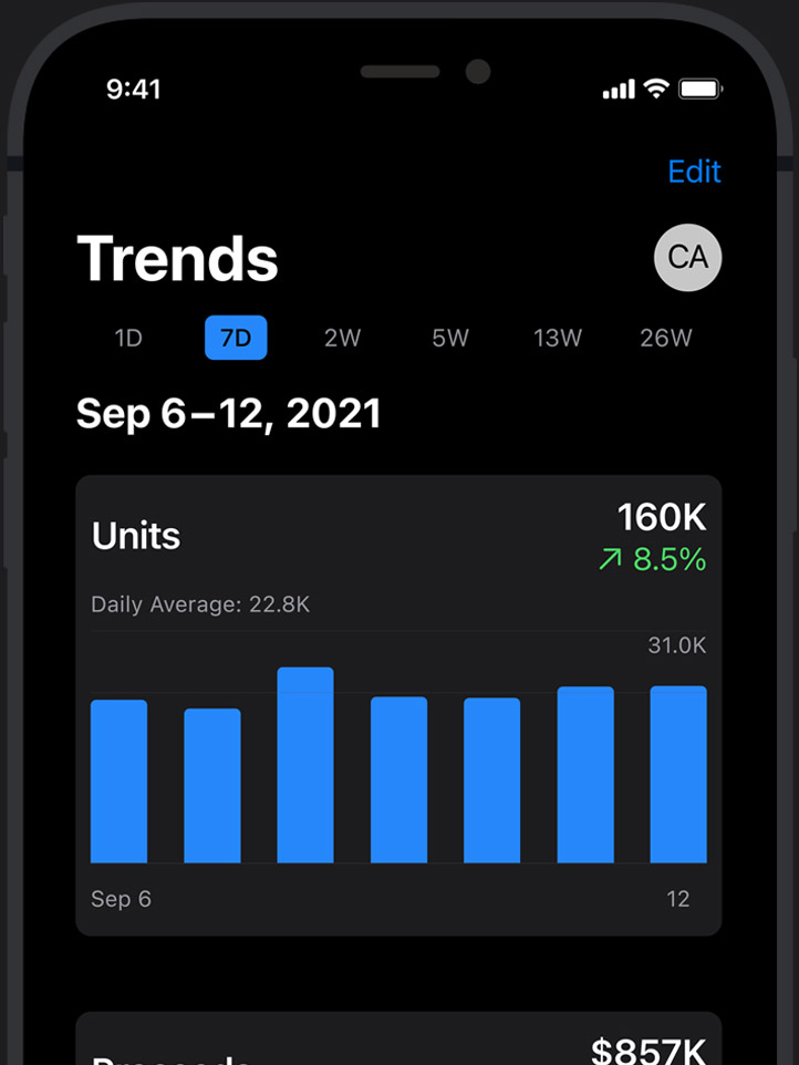 Each month, we analyze billions of anonymized data points that give developers valuable business insights through App Store Analytics.