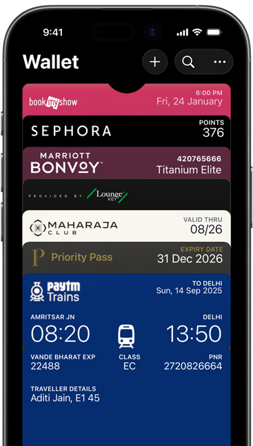 • Apple Wallet is an app on iPhone and Apple Watch that securely and conveniently organises your boarding passes, tickets, rewards cards and more — all in one place.