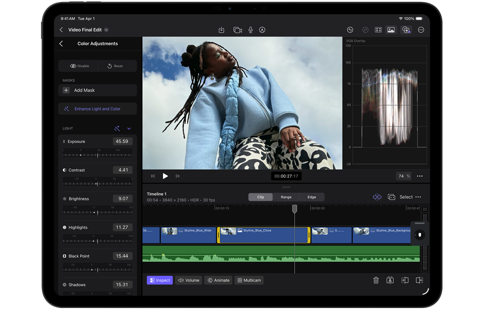 Shoot, edit, and share all on one device with a pro camera system with LiDAR Scanner, studio-quality mics, and four speakers. Capture 4K ProRes video, record a podcast, and pick the right microphone for each app with the input chooser.