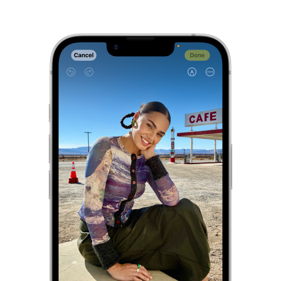 Use visual intelligence5 through the Action button or Control Center to instantly learn about objects and places you see. Just point your iPhone 16e to discover more or interact with something in front of you. Pull up reviews of a restaurant you pass, search for where to buy a new item you spotted, and more.
