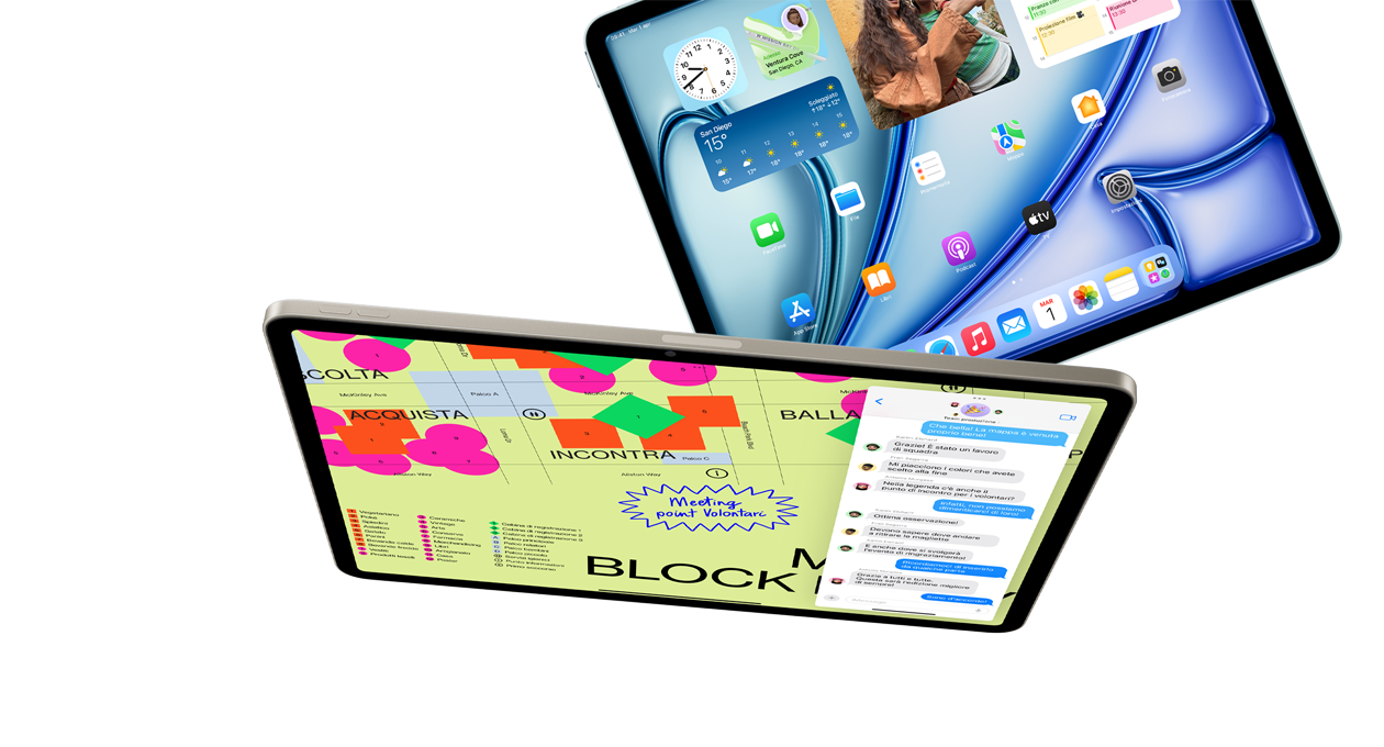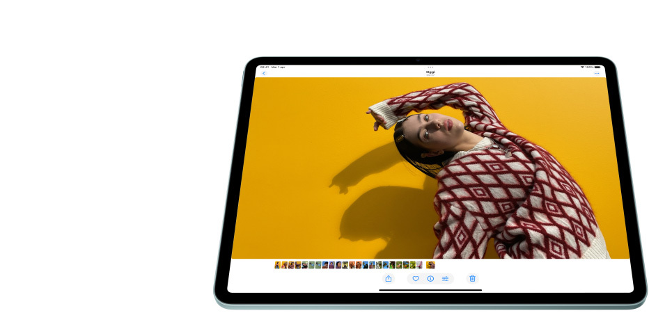 Puoi scegliere iPad Air nel formato da 11" o 13": hanno entrambi uno splendido display Liquid Retina ad alta risoluzione che rende spettacolare tutto quello che fai. E sono pronti ad aprirti un mondo fatto di immagini fluide e brillanti, e colori ultrafedeli.